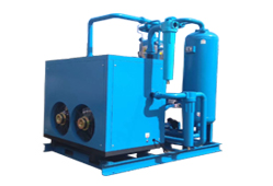 冷凍式干燥機運用了物理原理,將壓縮空氣中的水分冷凍至露點以下,使之從空氣中析出的空氣干燥機。受限于水的冰點溫度,理論上來說它的露點溫度可接近于0度,實際情況,好的冷凍干燥機露點溫度一般在5度左右。